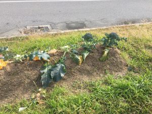 うむ、見事なブロッコリーが育っておるぞ。右から3番目は誰かが収穫して食ったんだろうな。