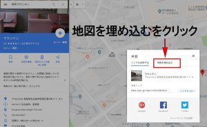 そうすると、次に「リンクを送信する」と「地図を埋め込む」が出てくる。