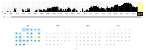 そして、下部に月ごとに表示されている所があり、更新された日が青いマーカーで表示される。